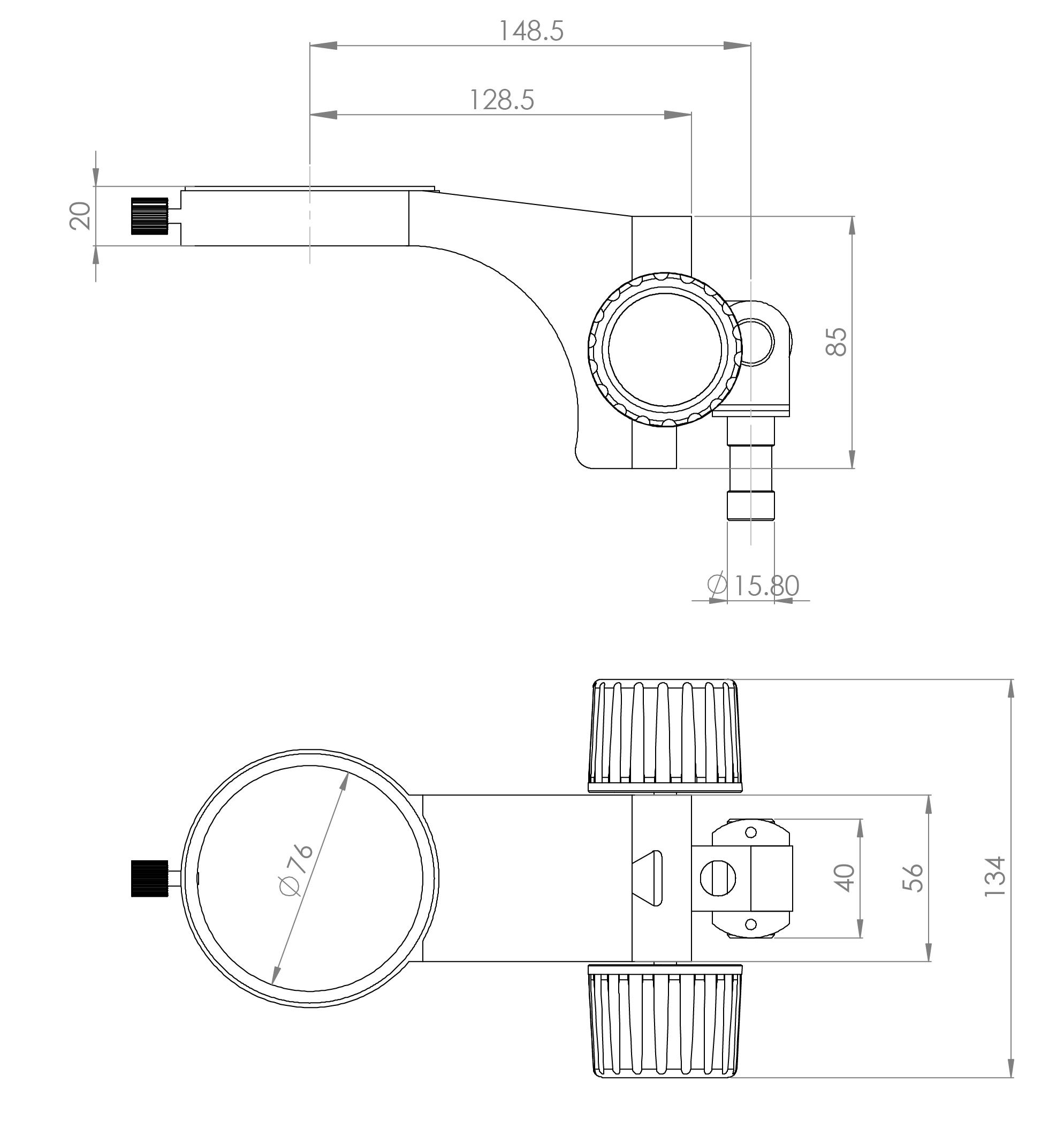 型號名稱:SF3升降組 說明: ● 帶有工業(yè)綁定機構的升降組,可任意角度觀察物體 ● 連接桿直徑Φ15.8 mm ,鏡體安裝孔直徑Φ 76mm .