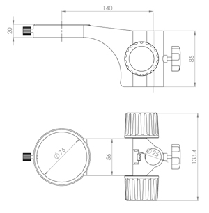 型號名稱:SF1升降組 說明: ● 調焦手輪松緊可調整,確保長期使用可靠 ● 立柱安裝孔直徑Φ 25mm ,鏡體安裝孔直徑Φ 76mm , 兩孔中心距 140mm
