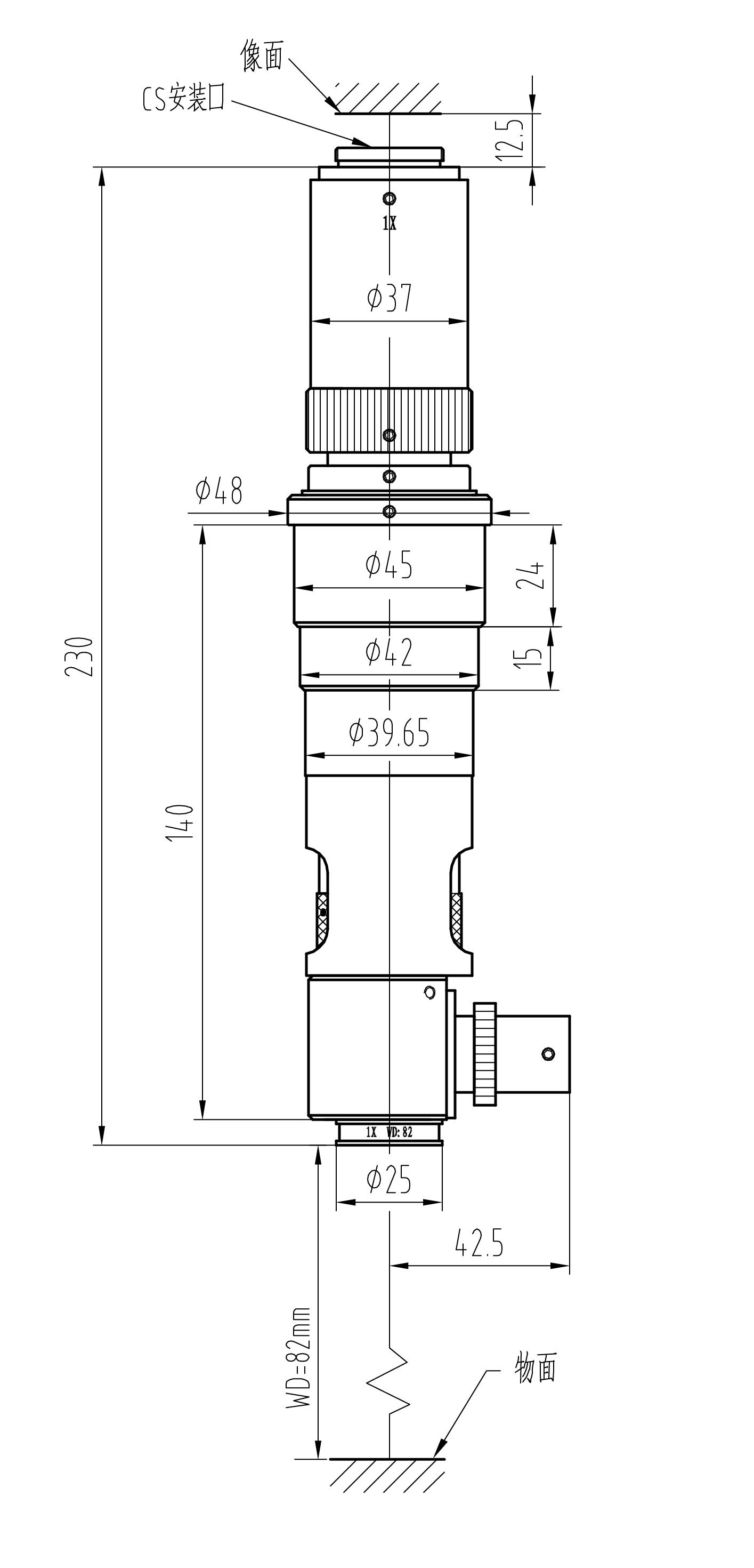 標(biāo)準(zhǔn)CS接口(支承面到CCD靶面距離為12.5mm)